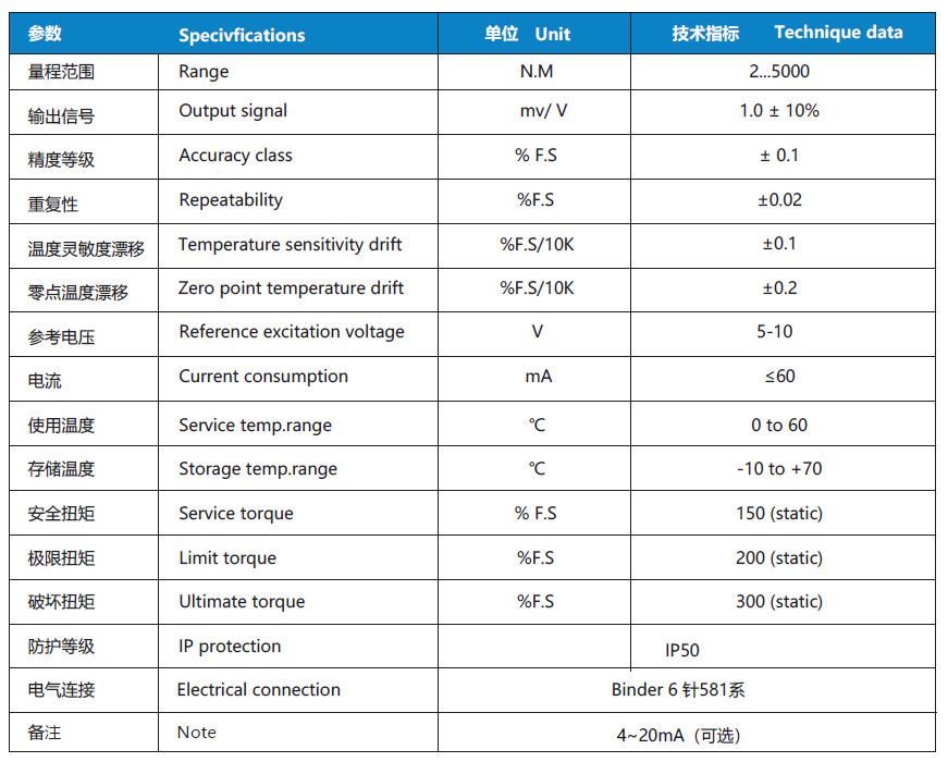 輸出:1mv/V、0~±5/10V、4~20mA可選