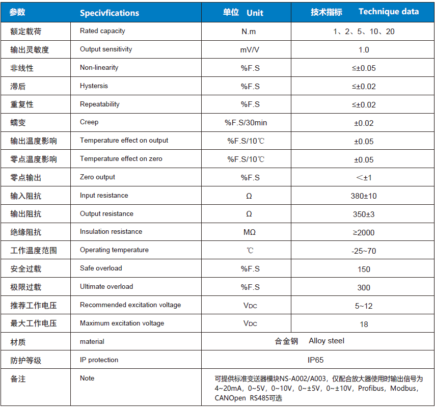輸出:1mv/V、0~±5/10V、4~20mA可選