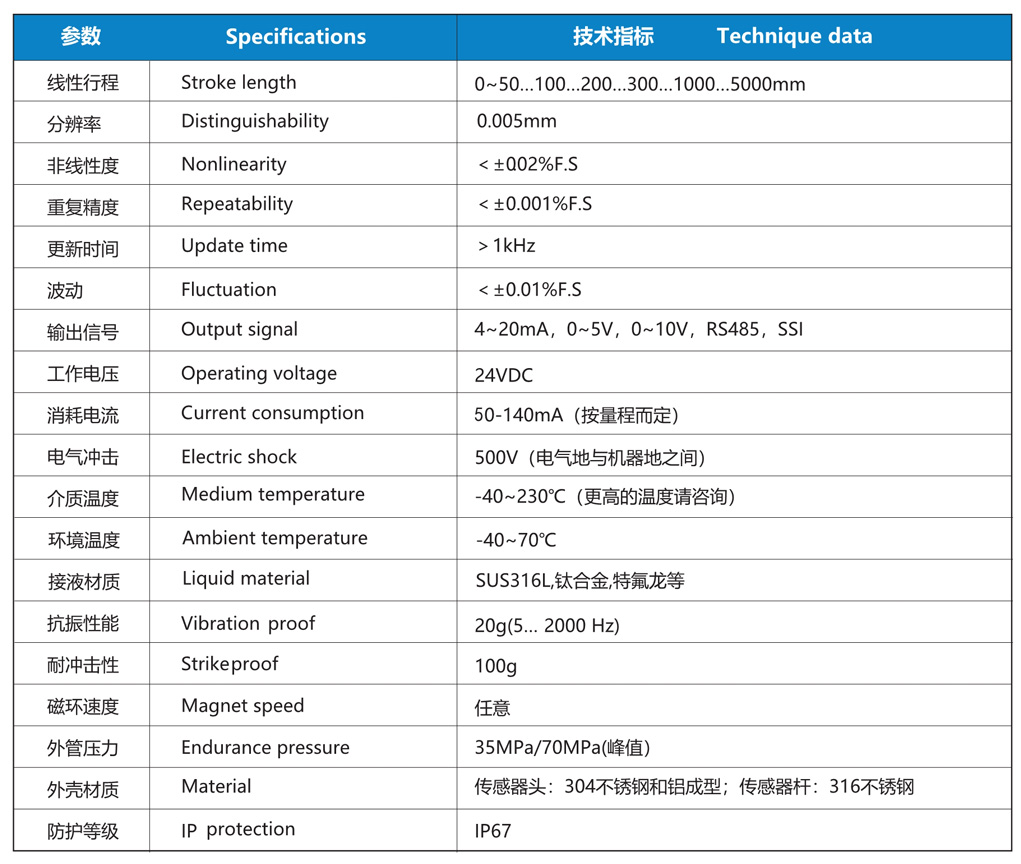 5000mm采用柔性特氟龍探桿時可以達到20米