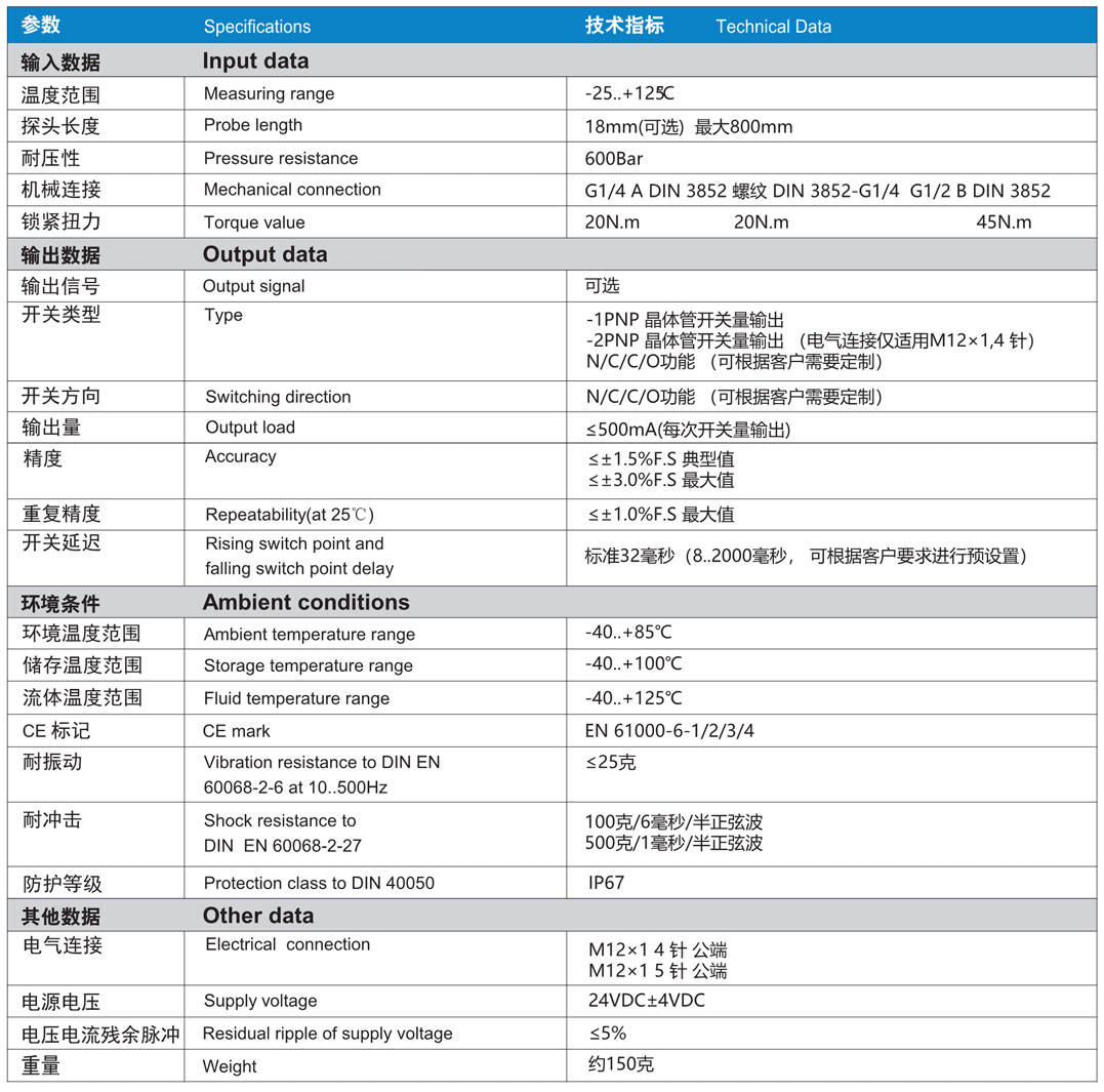 應(yīng)用于工業(yè)、冶金及機(jī)械液壓領(lǐng)域精度≤0.02% F.S.